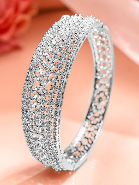 Dhiyona RJ Women's Women Rhodium-Plated Cubic Zirconia Studded Bangle-Style Bracelet