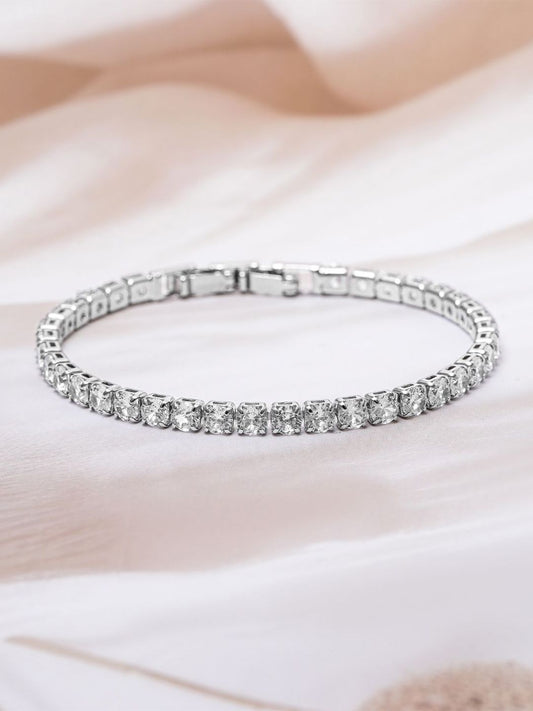 Dhiyona RJ Women's Rhodium Plated Cubic Zirconia Studded Tennis Bracelet