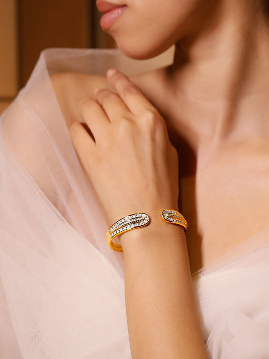 Dhiyona RJ Women's 22K Gold-Plated Openable Bracelet with Cubic Zirconia Detailing