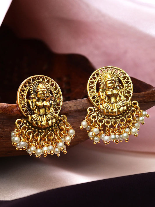 Dhiyona RJ Women's Gold-Toned Classic Divine Lakshmi Studs Earrings