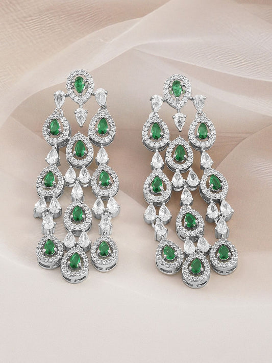 Dhiyona RJ Women's Rhodium-Plated Emerald Green & White Cubic Zirconia Premium Chandelier Earrings