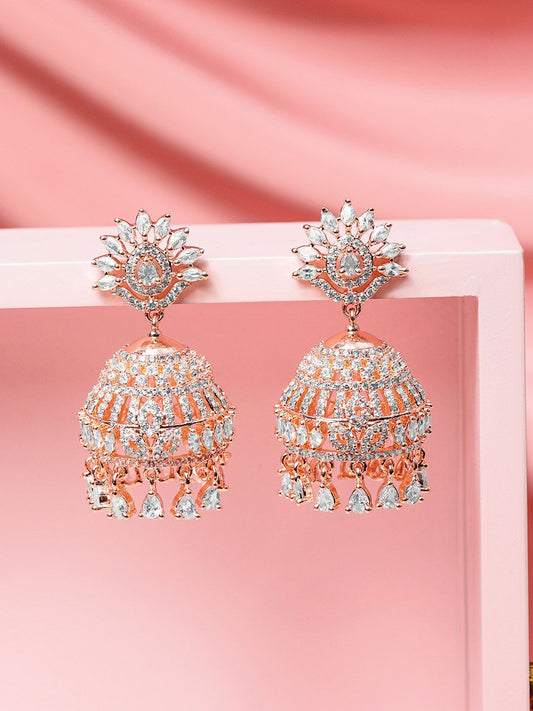 Dhiyona RJ Women's 18K Rose Gold Plated Cubic Zirconia Studded Dome Shaped Statement Jhumka