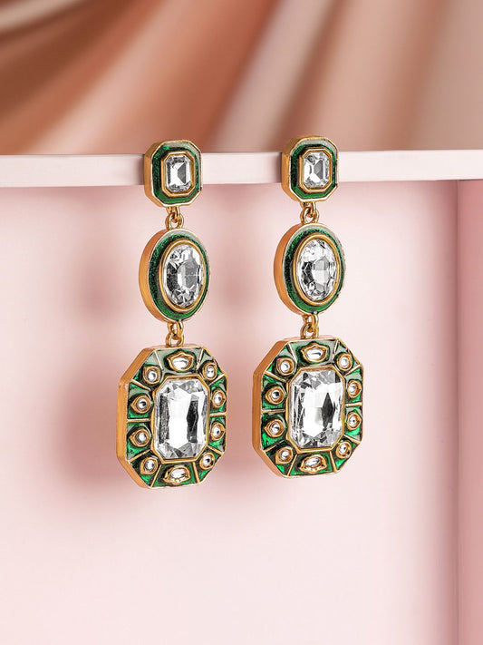 Dhiyona RJ Women's 18KT Gold Plated Emerald Studded Glamorous Shoulder Duster Drop Earrings