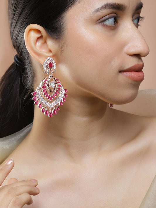 Dhiyona RJ Women's 22K Rose Gold-Plated White Cubic Zirconia Studded Statement Chandelier Earrings