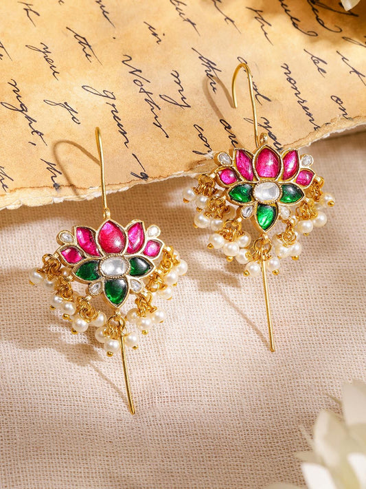 Dhiyona RJ Women's 22K Gold-Plated Multicolour Enamel & Kundan Studded Long Jhumka Dangler Earrings