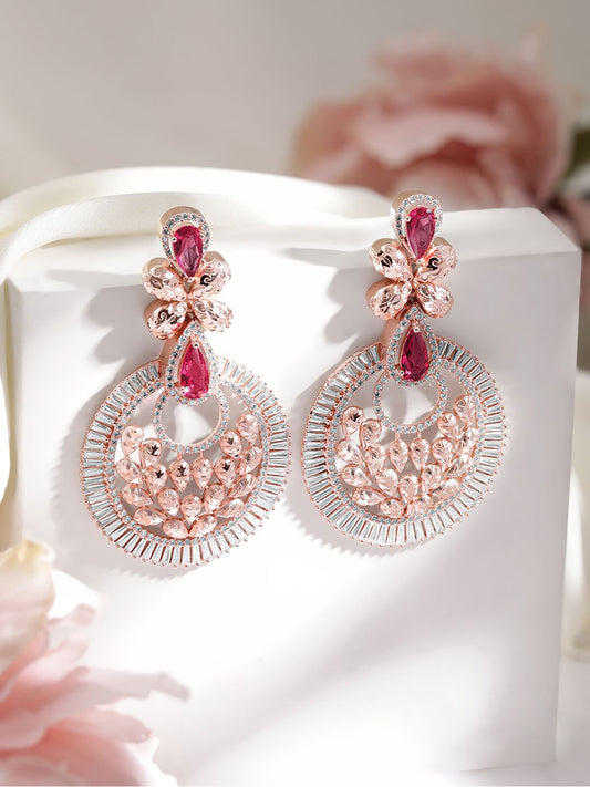 Dhiyona RJ Women's 22K Rose Gold-Plated Multicolor Cubic Zirconia Studded Chandbali Earrings