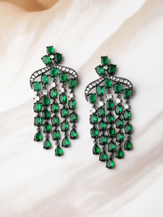 Dhiyona RJ Women's Silver-Plated Emerald Green & Cubic Zirconia Studded Premium Chandelier Earrings