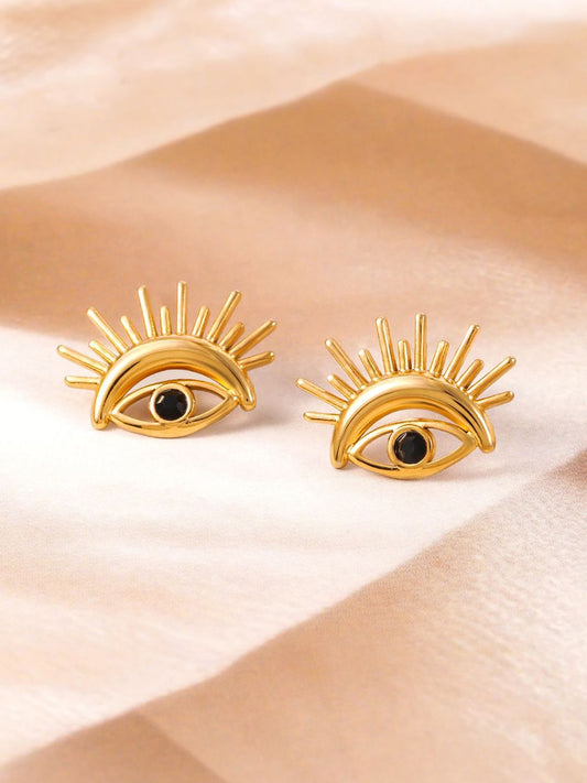 Dhiyona RJ Women's 18K Gold Plated Stainless Steel Tarnish-Free Waterproof Demi-Fine Evil Eye Studs