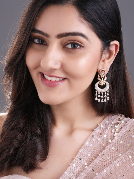 Dhiyona RJ Women's Rhodium Plated AAA Cubic Zirconia Studded Statement Chandelier Earrings