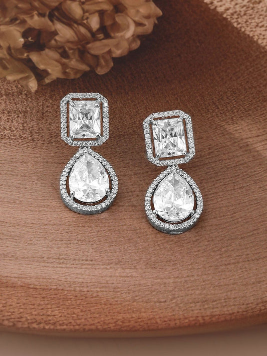 Dhiyona RJ Women's Rhodium Plated Crystal AD & Cubic Zirconia Studded Drop Earrings - Elegant Design