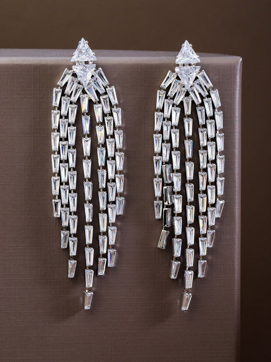 Dhiyona RJ Women's Rhodium Plated Premium AAA Crystal & Cubic Zirconia Studded Triangular Drop Earrings