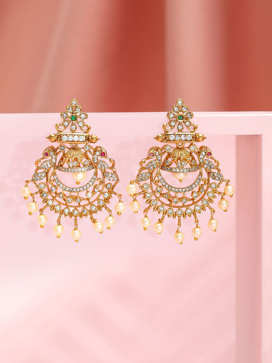 Dhiyona RJ Women's 22K Gold-Plated Kundan Studded with Pearl Drops Chandbali Earrings