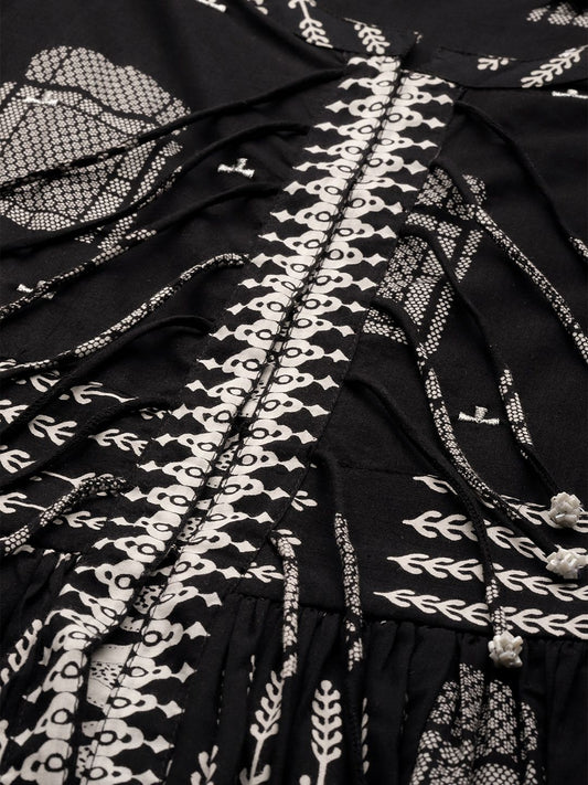 Buy 2 Get 1 FreeVendor:Dhiyona SNDhiyona SN Women's Black & White Ethnic Motifs Printed Pure Cotton Kurta with Sharara