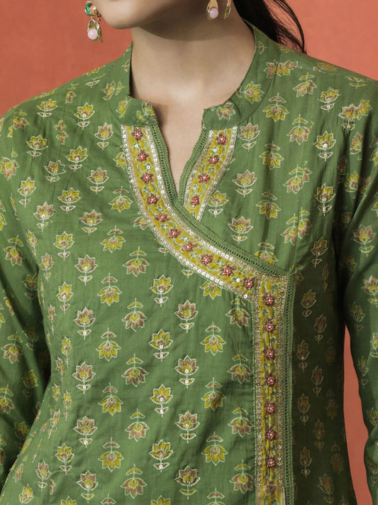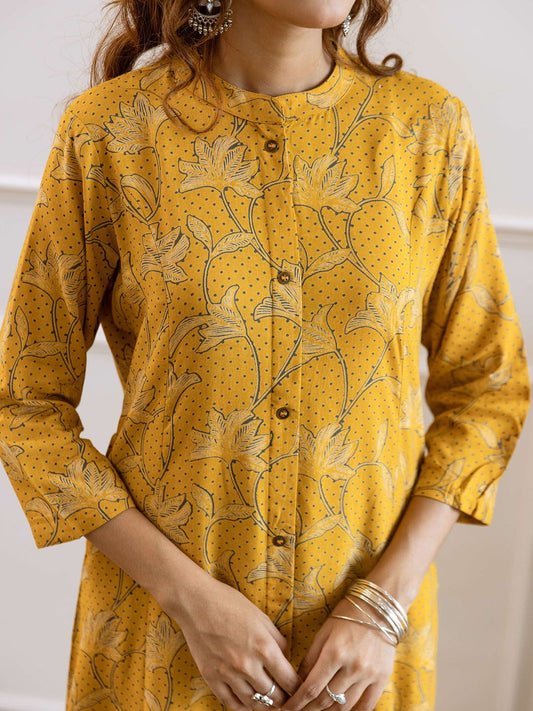 Dhiyona SN Women's Floral Printed Mandarin Collar Pure Cotton Straight Kurta & Trousers