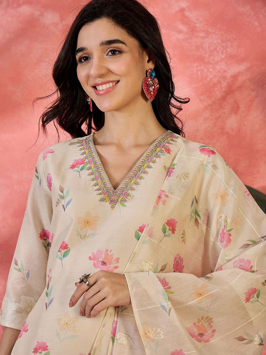 Dhiyona SN Women's Floral Printed Straight Kurta With Trouser & Dupatta