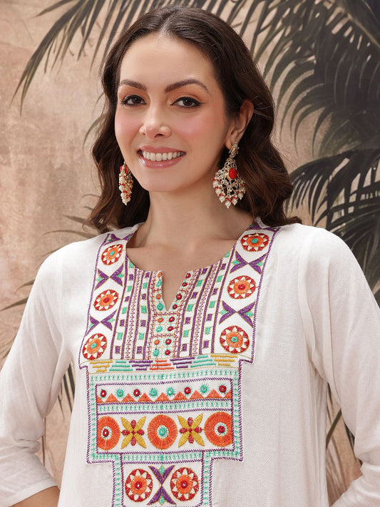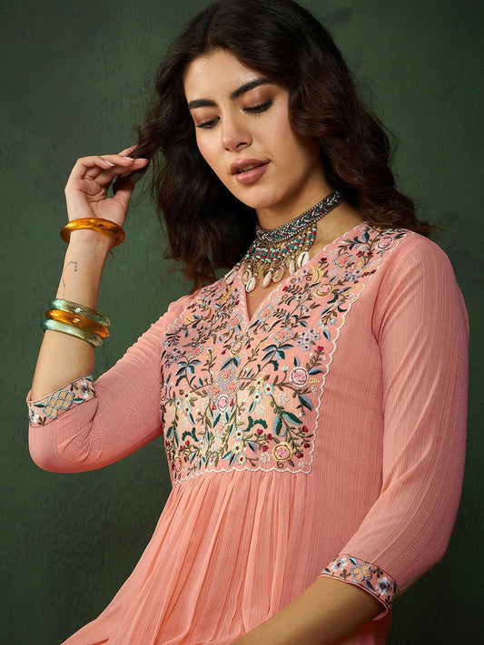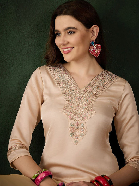 Dhiyona SN Women's V-Neck Embroidered Kurta Sets