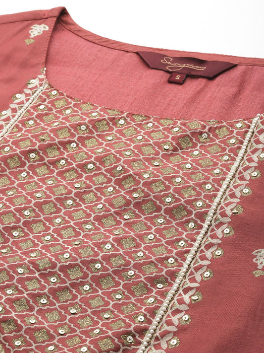 Dhiyona SN Women's Ethnic Motifs Printed Sequinned Chanderi Cotton Kurta with Palazzos & Dupatta