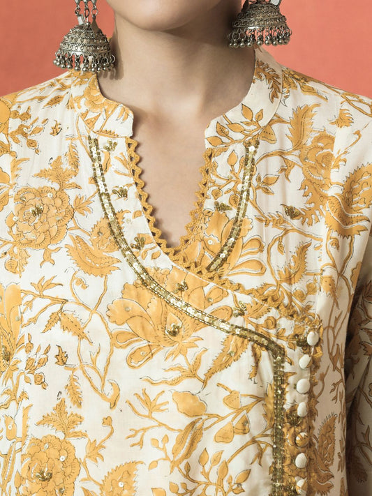 Dhiyona SN Women's Floral Printed Gotta Patti Pure Cotton Anarkali Kurta With Trousers & Dupatta