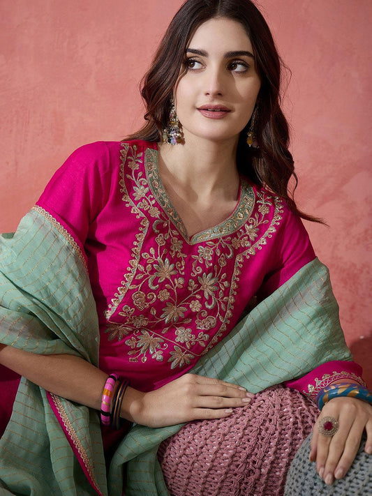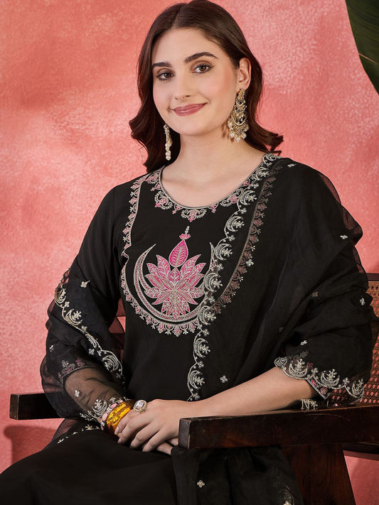 Dhiyona SN Women's Sequin Embroidered Straight Kurta & Trousers With Dupatta