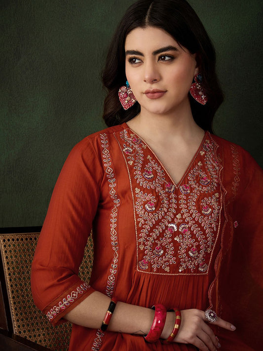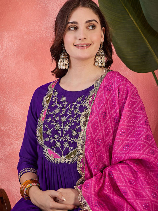Dhiyona SN Women's Alia Cut Embroidered A-Line Kurta With Trouser & Dupatta