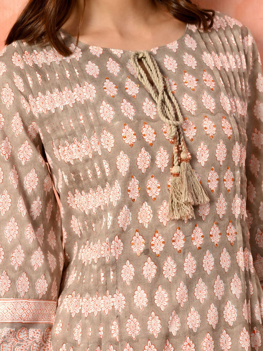 Dhiyona SN Women's Grey Cotton printed kurta and pant set