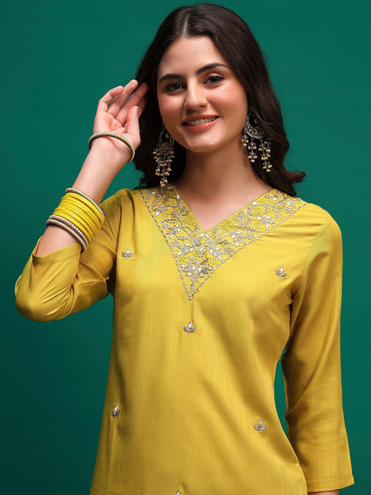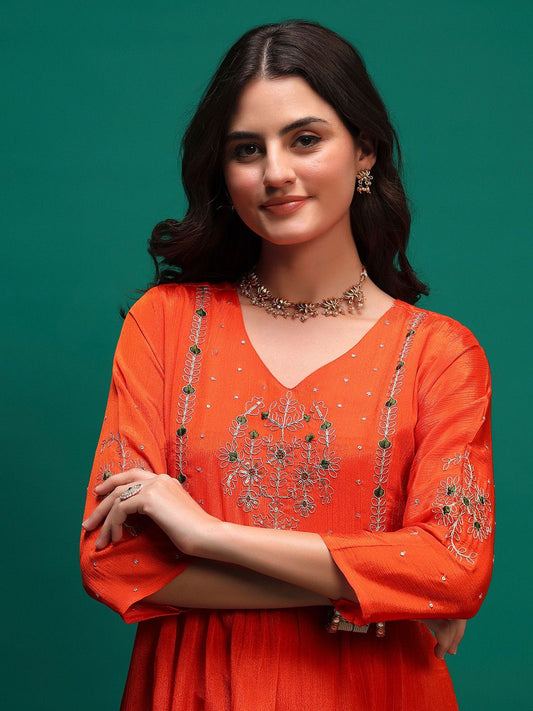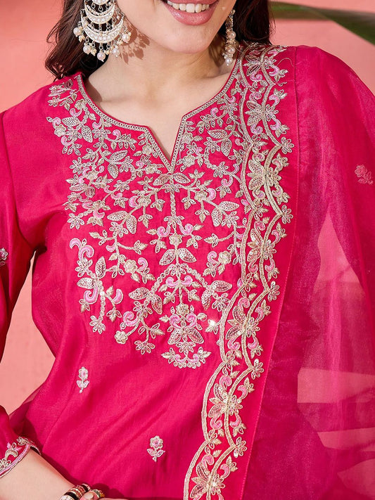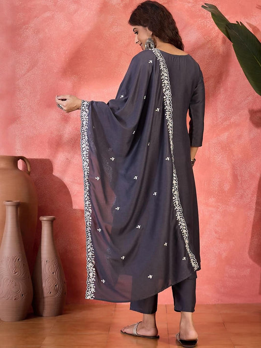 Dhiyona SN Women's Sequence Embroidered Front Slit Kurta With Trousers & Dupatta
