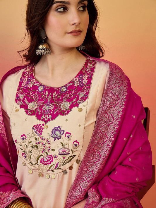 Dhiyona SN Women's Floral Embroidered Kurta with Trousers & Dupatta