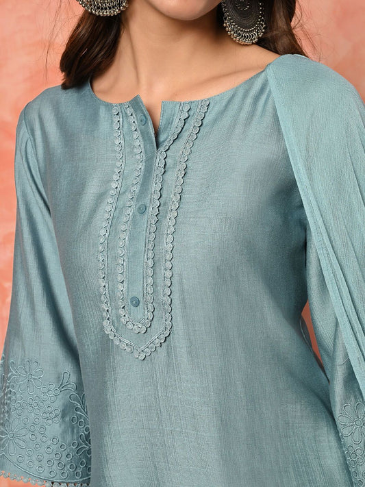 Dhiyona SN Women's Solid Embroidered Kurta with Trousers & Dupatta