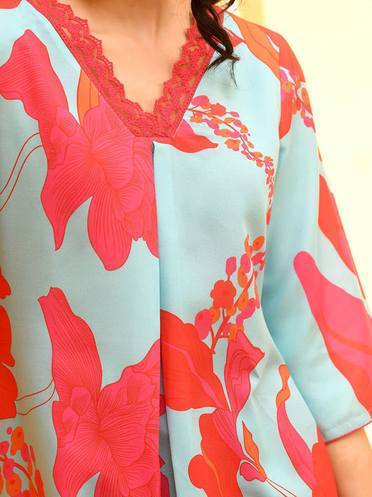 Dhiyona SN Women's Blue Orange Poly rayon digital printed kurta and palazzo set
