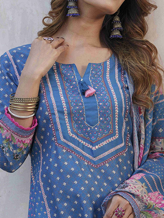 Dhiyona SN Women's Printed & Embroidered Kurta & Trousers with Dupatta