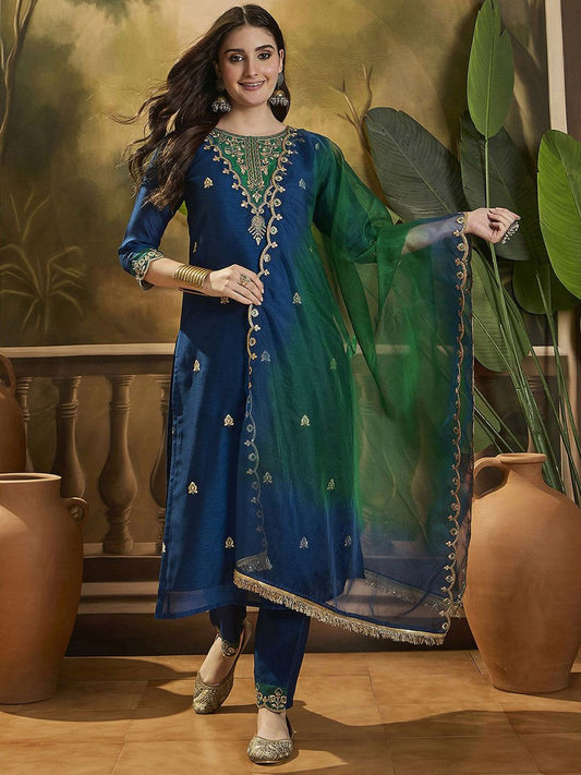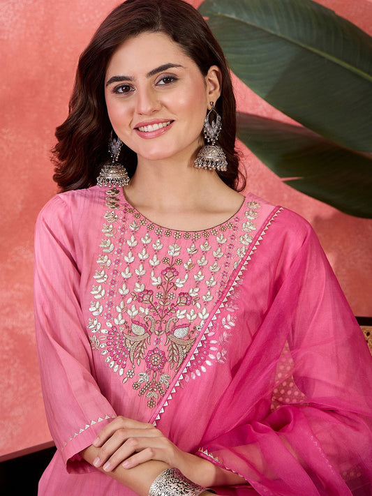 Dhiyona SN Women's Floral Embroidered Straight Kurta & Trousers With Dupatta