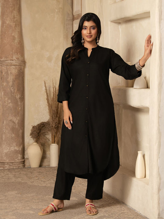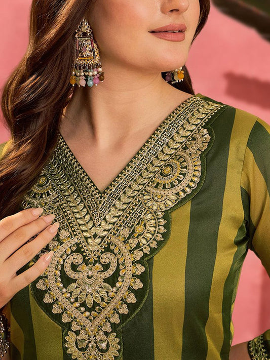 Dhiyona SN Women's Striped V-Neck Thread Work A-Line Asymmetric Kurta & Trousers