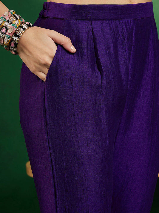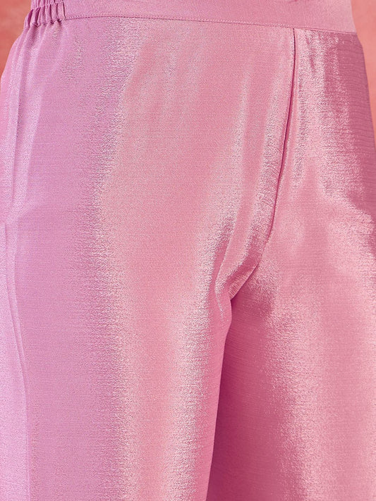 Dhiyona SN Women's Fuchsia Geometric Embroidered Round Neck Mirror Work Kaftan With Trousers