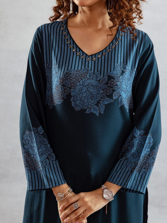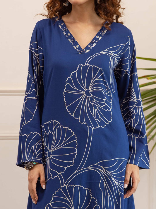 Dhiyona SN Women's Floral Printed V-Neck Straight Kurta & Palazzo