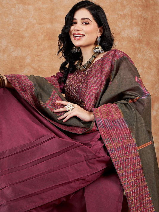 Dhiyona SN Women's Ethnic Motifs Embroidered V-Neck Kurta & Trousers With Dupatta