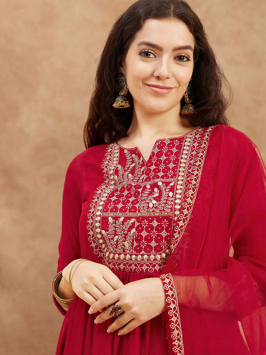 Dhiyona SN Women's Yoke Design Embroidered Kurta Sets With Dupatta