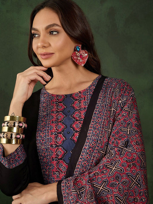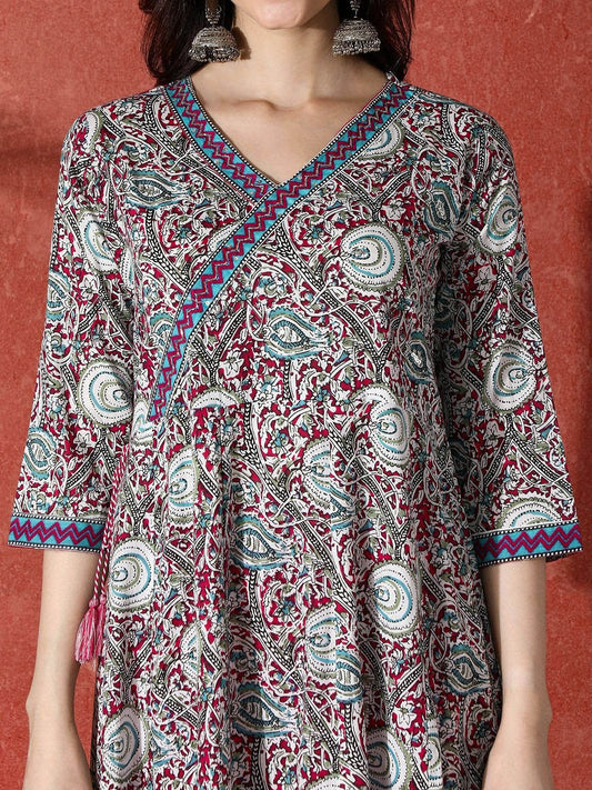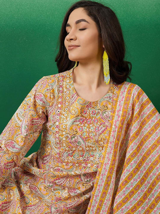 Dhiyona SN Women's Paisley Printed & Embroidered Pure Cotton A-Line Kurta & Trousers With Dupatta