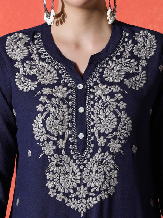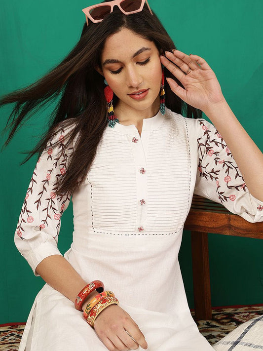 Dhiyona SN Women's Embroidered Mandarin Collar Cotton Kurta With Trouser