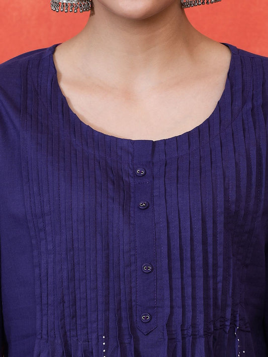 Dhiyona SN Women's Blue Bandhani Printed V Neck Pure Cotton Anarkali Kurta With Trouser And Dupatta