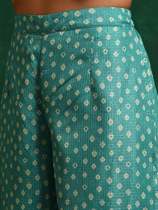 Dhiyona SN Women's Green Bandhani Printed Flared Sleeves Straight Kurta With Palazzo & Dupatta