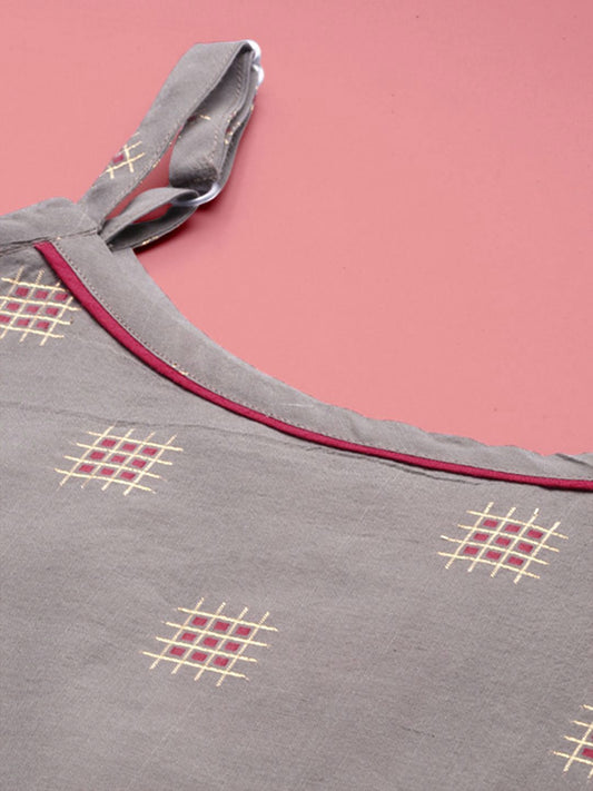 Dhiyona SN Women's Ethnic Motifs Print Strappy Pure Cotton Kurta with Sharara & Dupatta