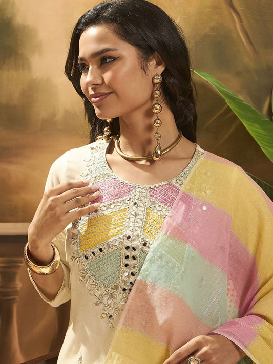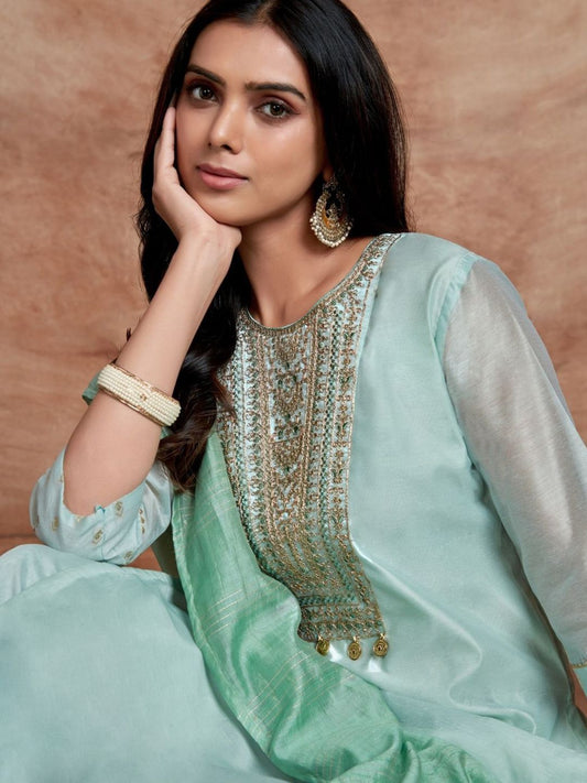 Buy 2 Get 1 FreeVendor:Dhiyona SNDhiyona SN Women's Zari & Sequin Cording Embroidered Straight Kurta & Trousers With Dupatta