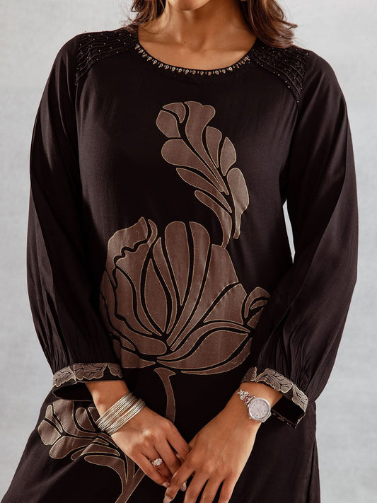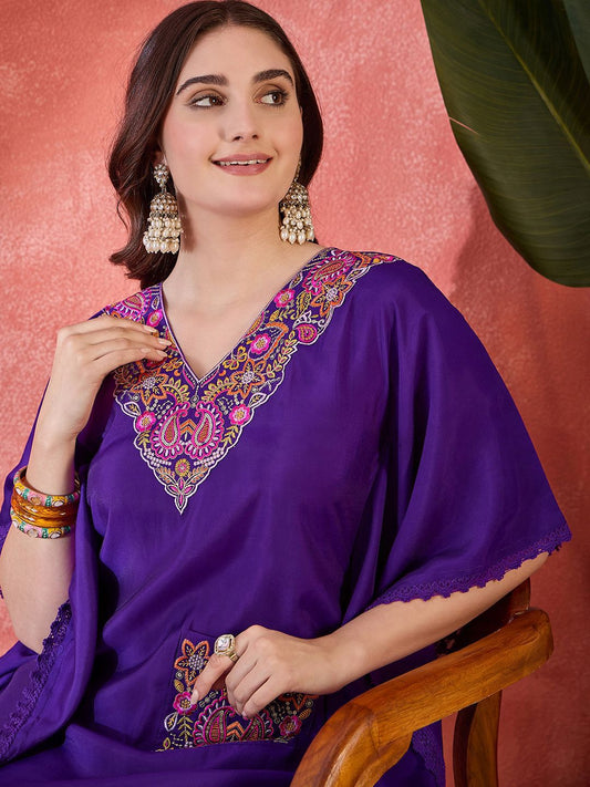 Dhiyona SN Women's Ethnic Motifs Embroidered Zari Sequence Kaftan Kurta & Trousers Set