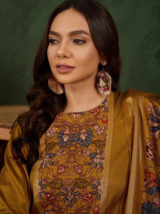 Dhiyona SN Women's Floral Printed Sequinned Straight Kurta With Trouser And Dupatta