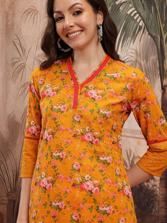 Dhiyona SN Women's Floral Printed Cotton Kurta with Trousers