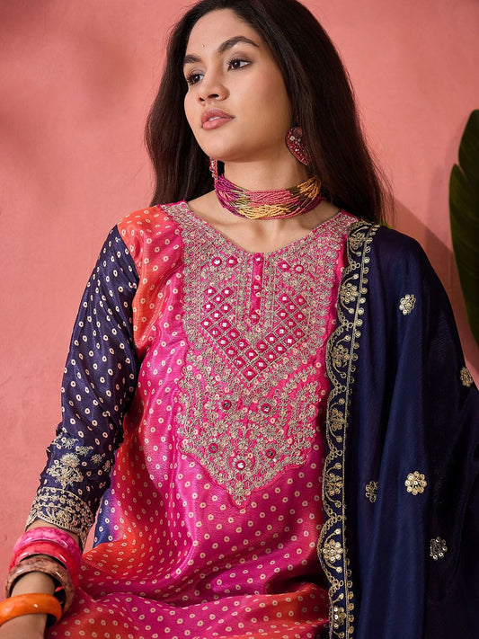 Buy 2 Get 1 FreeVendor:Dhiyona SNDhiyona SN Women's Bandhani Printed with Embroidered Kurta With Trousers & Dupatta