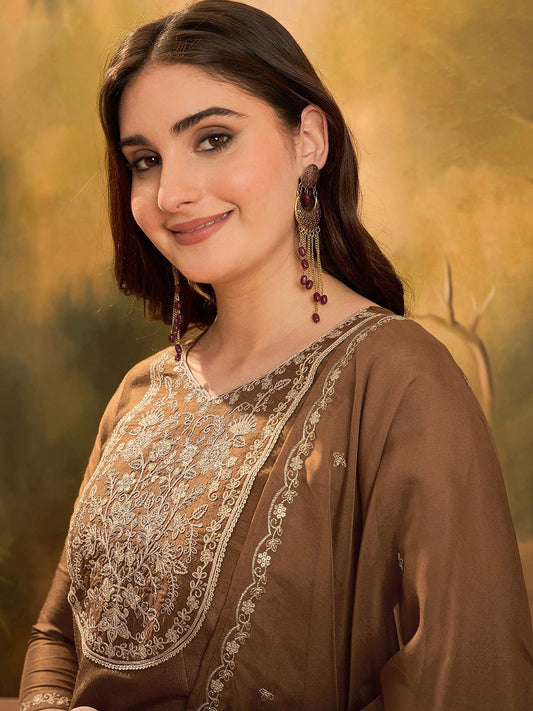 Dhiyona SN Women's Embroidered Straight Kurta With Trouser & Dupatta