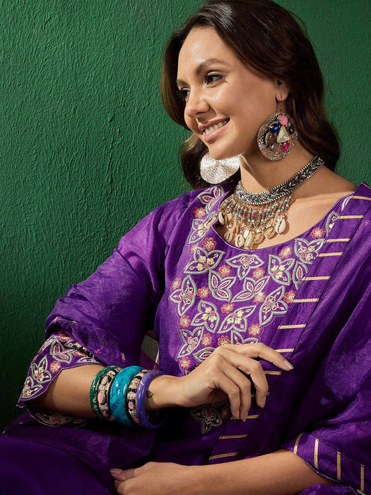 Dhiyona SN Women's Sequin Embroidered A-Line Kurta & Trousers With Dupatta