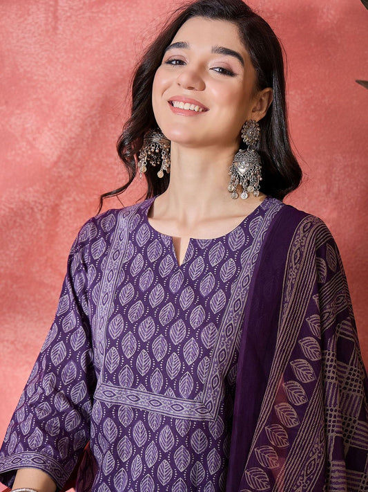 Dhiyona SN Women's Floral Printed Pure Cotton Straight Kurta With Trousers & Dupatta