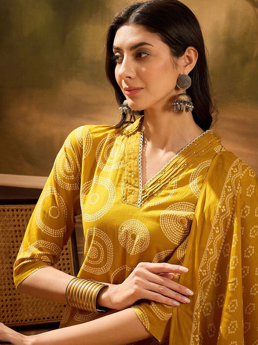 Dhiyona SN Women's Bandhani Printed Pure Cotton Straight Kurta With Trousers & Dupatta Set